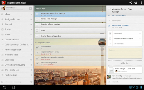 Nó cho phép tạo ra những nhiệm vụ mới, nhiệm vụ phụ hay sắp xếp trong các mục làm việc khác nhau. Ví dụ một thư mục công việc và một thư mục nghỉ ngơi. Hãy đăng ký một tài khoản để tận hưởng tiện ích từ ứng dụng.